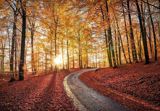 Drive In Autumn Colors White Modern Wood Framed Art Print with Double Matting by Lindsten, Christian