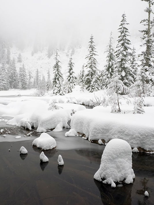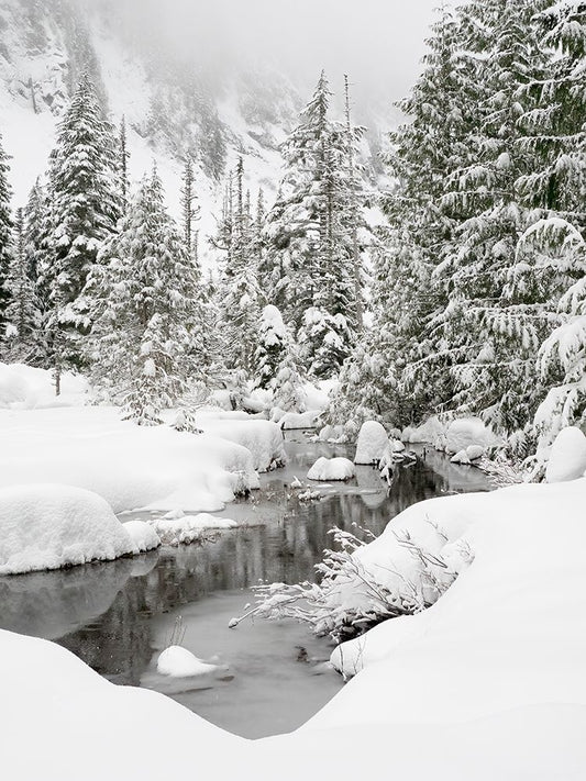 Washington State- Central Cascades. Granite Creek winter scene Black Ornate Wood Framed Art Print with Double Matting by Wild, Jamie and Judy