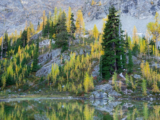 Washington State-North Cascades-Blue Lake-Larch tree reflections Black Ornate Wood Framed Art Print with Double Matting by Wild, Jamie and Judy