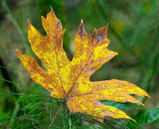 Washington State Bigleaf maple leaf Black Ornate Wood Framed Art Print with Double Matting by Wild, Jamie and Judy