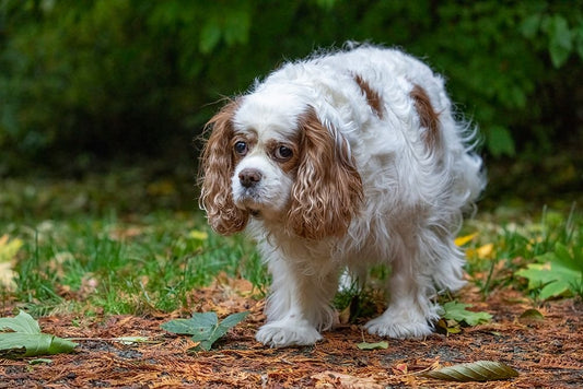 Issaquah- Washington State- USA. Sad-looking- elderly Cavalier King Charles Spaniel Black Ornate Wood Framed Art Print with Double Matting by Horton, Janet
