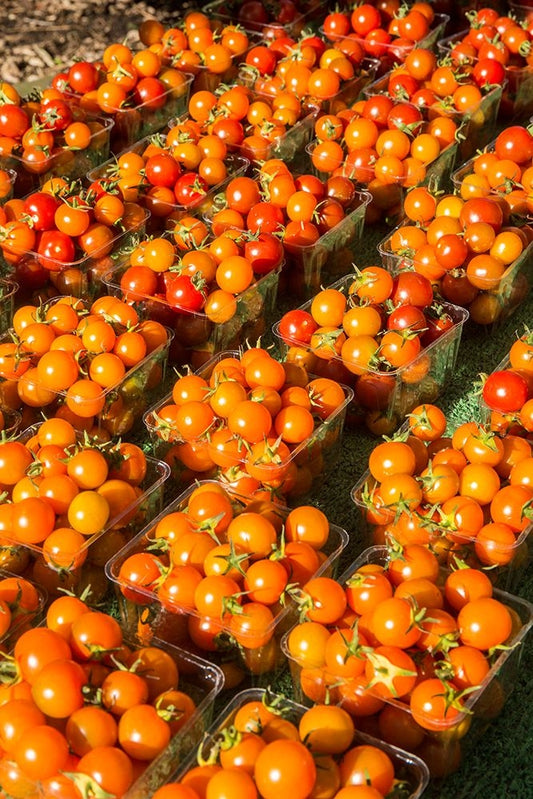 Issaquah-Washington State-USA Pints of cherry tomatoes for sale at a Farmers Market Black Ornate Wood Framed Art Print with Double Matting by Horton, Janet