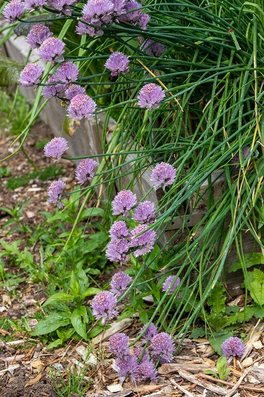 Issaquah- Washington State- USA. Over-wintered chive plants in blossom Black Ornate Wood Framed Art Print with Double Matting by Horton, Janet
