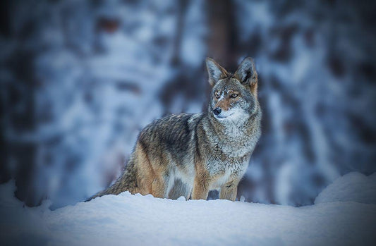 Coyote In Winter White Modern Wood Framed Art Print with Double Matting by Qiu, Jenny