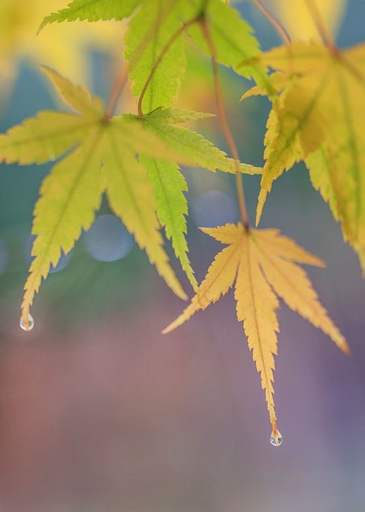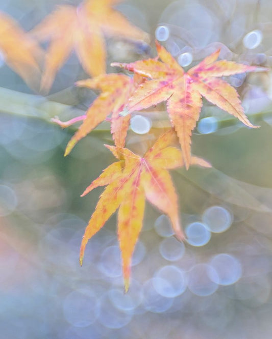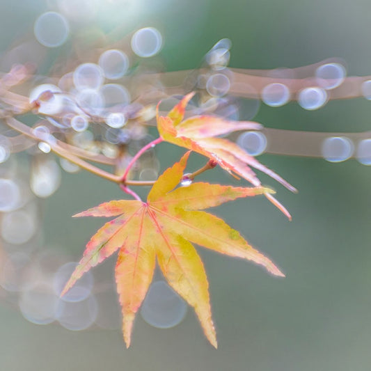 USA- Washington State- Seabeck. Japanese maple leaves after autumn rainstorm. Black Ornate Wood Framed Art Print with Double Matting by Jaynes Gallery