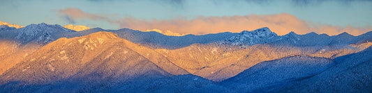 USA- Washington State. Panoramic of sunrise on Olympic Mountains in winter. Black Ornate Wood Framed Art Print with Double Matting by Jaynes Gallery