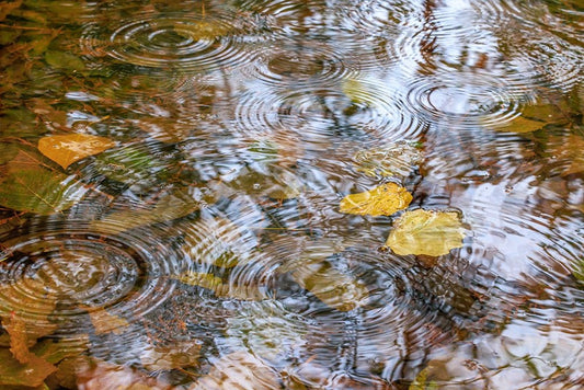 USA- Washington State- Seabeck. Autumn raindrops on water. Black Ornate Wood Framed Art Print with Double Matting by Jaynes Gallery