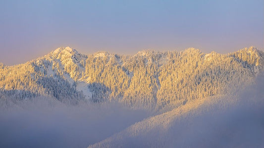 USA- Washington State. Sunrise on snow-covered mountains in Olympic National Forest. Black Ornate Wood Framed Art Print with Double Matting by Jaynes Gallery