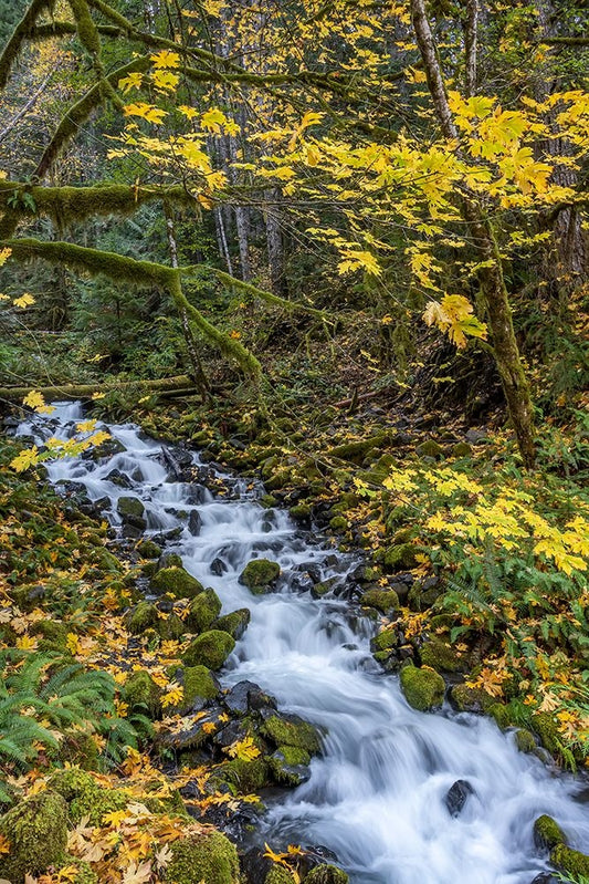 USA-Washington State-Olympic National Park Creek rapids and forest in autumn Black Ornate Wood Framed Art Print with Double Matting by Jaynes Gallery