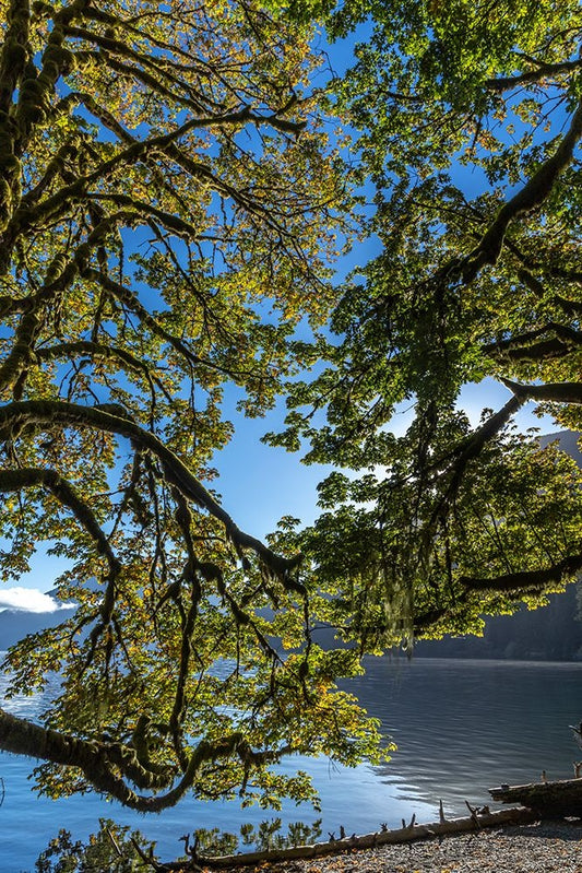 USA-Washington State-Olympic National Park Alder tree branches overhang shore of Lake Crescent Black Ornate Wood Framed Art Print with Double Matting by Jaynes Gallery