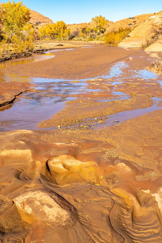 USA- Utah- Grand Staircase Escalante National Monument. Harris Wash and cottonwood trees in fall. Black Ornate Wood Framed Art Print with Double Matting by Jaynes Gallery