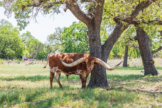 Marble Falls-Texas-USA-Longhorn cattle in the Texas Hill Country Black Ornate Wood Framed Art Print with Double Matting by Wilson, Emily M.