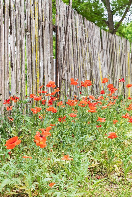 Castroville-Texas-USA-Poppies and wooden fence in the Texas Hill Country Black Ornate Wood Framed Art Print with Double Matting by Wilson, Emily M.