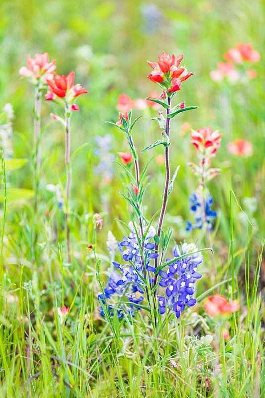 Llano-Texas-USA-Indian Paintbrush and Bluebonnet wildflowers in the Texas Hill Country Black Ornate Wood Framed Art Print with Double Matting by Wilson, Emily M.