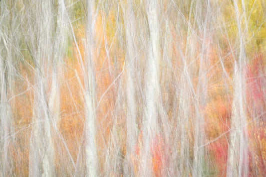 USA-New York-Adirondacks Keene-abstract of autumn foliage and bare trees Black Ornate Wood Framed Art Print with Double Matting by Collins, Ann