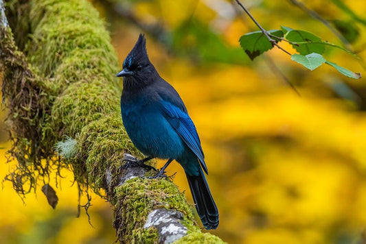 USA-Oregon-Silver Falls State Park Stellers jay on branch Black Ornate Wood Framed Art Print with Double Matting by Jaynes Gallery