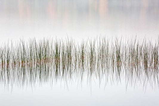 USA-New York-Adirondacks Long Lake-reeds-fog-and fall foliage at Eaton Lake Black Ornate Wood Framed Art Print with Double Matting by Collins, Ann