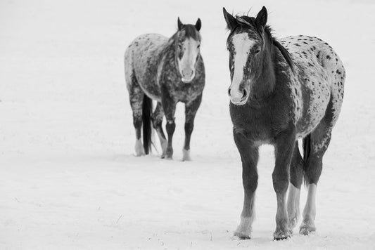 USA-Montana-Gardiner Appaloosa horses in winter snow Black Ornate Wood Framed Art Print with Double Matting by Hopkins, Cindy Miller