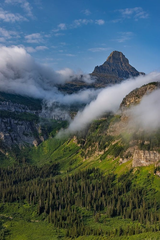 Rolling fog clouds with Heavy Runner and Reynold Mountains at Logan Pass in Glacier National Park Black Ornate Wood Framed Art Print with Double Matting by Haney, Chuck