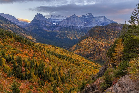 Looking down the McDonald Valley in autumn-Glacier National Park-Montana-USA Black Ornate Wood Framed Art Print with Double Matting by Haney, Chuck