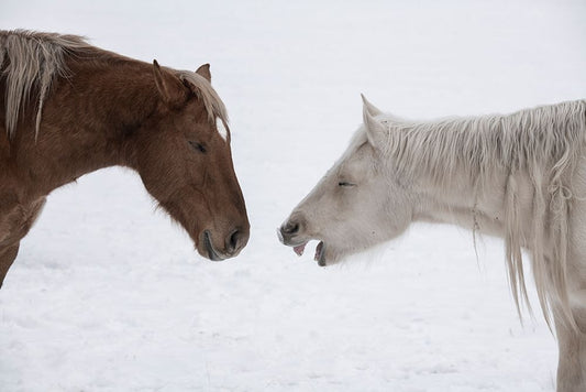 USA-Montana Gardiner Palomino and sorrel-with shaggy winter coat-nose to nose Black Ornate Wood Framed Art Print with Double Matting by Hopkins, Cindy Miller
