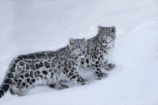 USA- Montana. Captive snow leopards in winter. Black Ornate Wood Framed Art Print with Double Matting by Jaynes Gallery