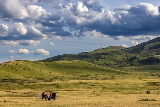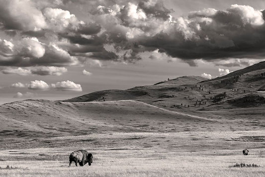 Bison bulls grazing at the National Bison Range in Moiese-Montana-USA Black Ornate Wood Framed Art Print with Double Matting by Haney, Chuck