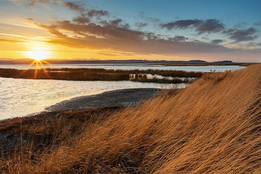 Sunset skies at Freezeout Lake Wildlife Management Area near Choteau-Montana-USA Black Ornate Wood Framed Art Print with Double Matting by Haney, Chuck
