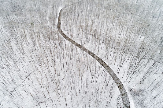 Aerial view of a fresh snow over the forest and road-Marion County-Illinois Black Ornate Wood Framed Art Print with Double Matting by Day, Richard and Susan