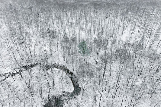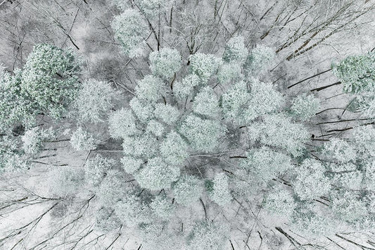 Aerial view of woods and white pine trees after a snowfall-Marion County-Illinois Black Ornate Wood Framed Art Print with Double Matting by Day, Richard and Susan