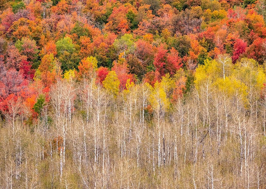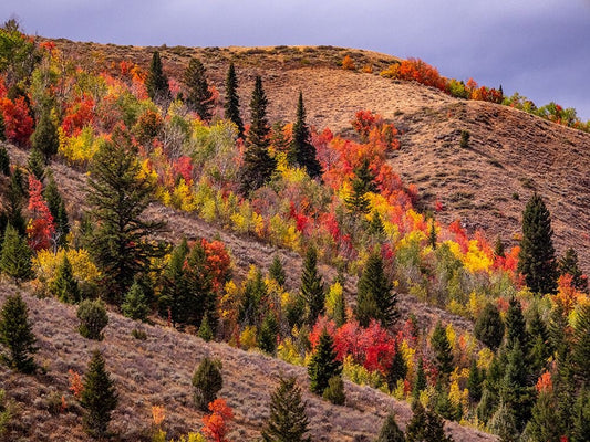 USA-Idaho-St Charles-hillside along dirt road 411 and Fall colored Canyon Maples in Reds Black Ornate Wood Framed Art Print with Double Matting by Gulin, Sylvia
