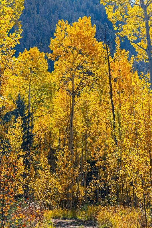 Aspens in autumn Black Ornate Wood Framed Art Print with Double Matting by Ostrowitz, Mallorie