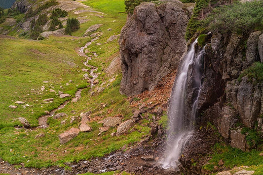 USA-Colorado-Uncompahgre National Forest Mountain landscape with waterfall and wildflowers Black Ornate Wood Framed Art Print with Double Matting by Jaynes Gallery