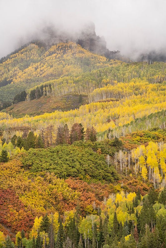 USA-Colorado-Uncompahgre National Forest Cloud and autumn-colored forest Black Ornate Wood Framed Art Print with Double Matting by Jaynes Gallery