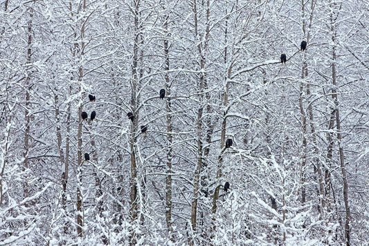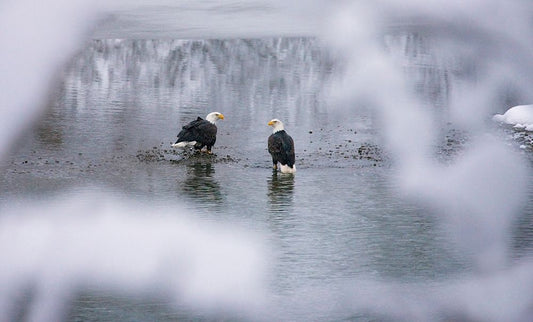 Bald Eagles on the river in the forest covered with snow-Haines-Alaska-USA Black Ornate Wood Framed Art Print with Double Matting by Su, Keren