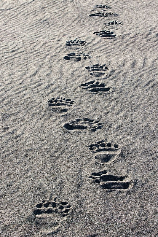 Adult grizzly bear tracks on sandy beach-Lake Clark National Park and Preserve-Alaska Black Ornate Wood Framed Art Print with Double Matting by Jones, Adam