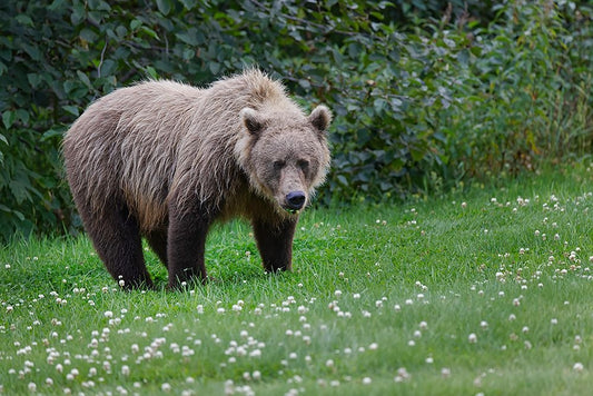 Grizzly bear eating clover-Lake Clark National Park and Preserve-Alaska Black Ornate Wood Framed Art Print with Double Matting by Jones, Adam