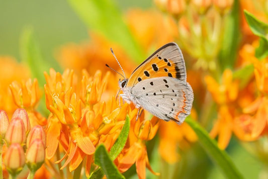 American Copper-Lycaena phlaeas-on Butterfly Milkweed-Asclepias tuberosa-Lawrence County-Illinois Black Ornate Wood Framed Art Print with Double Matting by Day, Richard and Susan