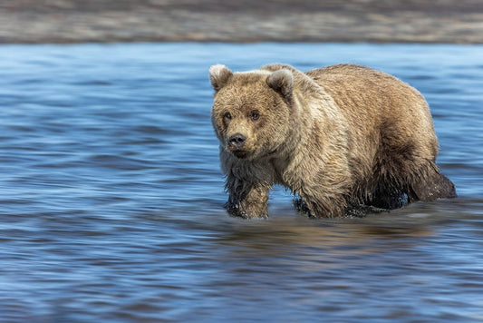 Adult grizzly bear on shoreline at sunrise-Lake Clark National Park and Preserve-Alaska Black Ornate Wood Framed Art Print with Double Matting by Jones, Adam