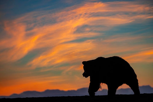 Adult grizzly bear silhouetted at sunrise-Lake Clark National Park and Preserve-Alaska Black Ornate Wood Framed Art Print with Double Matting by Jones, Adam