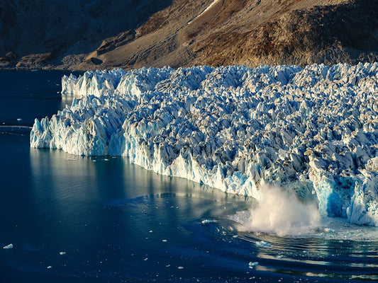 Ice calving. Knud Rasmussen Glacier-Sermiligaaq Fjord- Ammassalik- Danish Territory. Black Ornate Wood Framed Art Print with Double Matting by Zwick, Martin