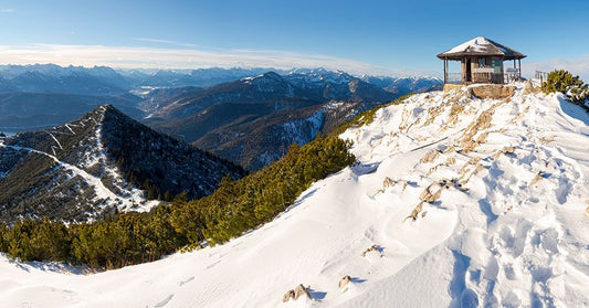 Summit of Mt-Herzogstand with pavilion near lake Walchensee during winter in the Bavarian Alps-Germ Black Ornate Wood Framed Art Print with Double Matting by Zwick, Martin