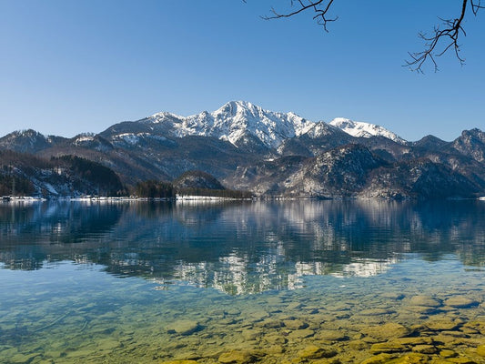 Lake Kochelsee at village Kochel am See during winter in the Bavarian Alps-Mt-Herzogstand in the ba Black Ornate Wood Framed Art Print with Double Matting by Zwick, Martin