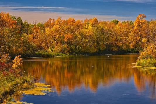 Canada- Manitoba. Autumn colors Hecla-Grindstone Provincial Park. Black Ornate Wood Framed Art Print with Double Matting by Jaynes Gallery