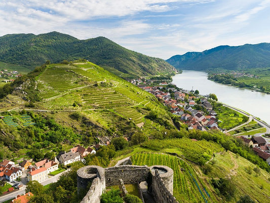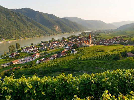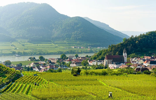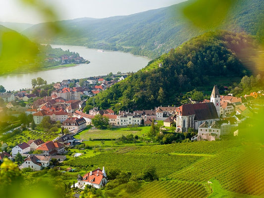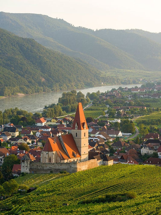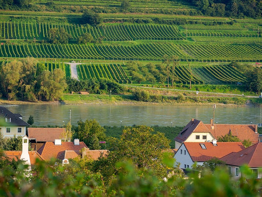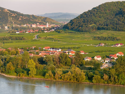 View over historic village Spit-Hofarnsdorf-UNESCO World Heritage Site-Lower Austria Black Ornate Wood Framed Art Print with Double Matting by Zwick, Martin