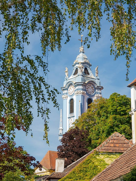 The collegiate church-Historic town Durnstein-UNESCO World Heritage Site-Lower Austria Black Ornate Wood Framed Art Print with Double Matting by Zwick, Martin