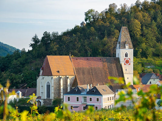 Church Heiliger Mauritius-Saint Maurice-Historic village Spitz-UNESCO World Heritage Site-Austria Black Ornate Wood Framed Art Print with Double Matting by Zwick, Martin