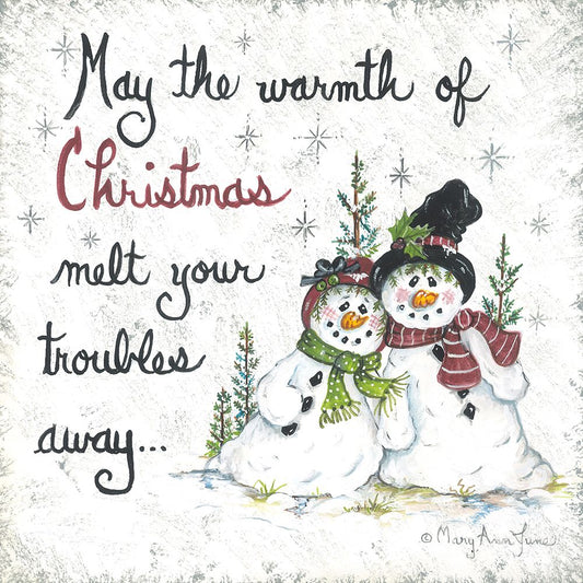 Merry and Bright Snowman Black Ornate Wood Framed Art Print with Double Matting by June, Mary Ann