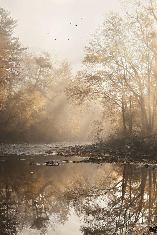 Morning Rays at Swatara Creek Black Ornate Wood Framed Art Print with Double Matting by Deiter, Lori