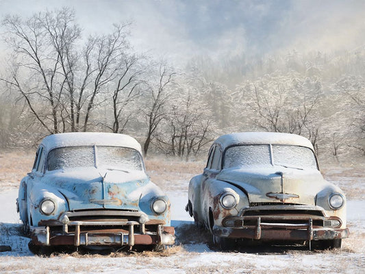 Truck Full of Sleds Black Ornate Wood Framed Art Print with Double Matting by Deiter, Lori